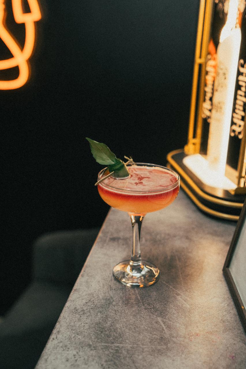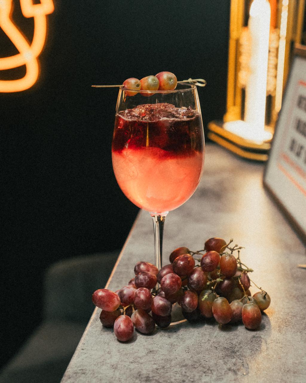 GIn, Cucumber, Basil, Pinneapple juice, Lemon juice and Red wine