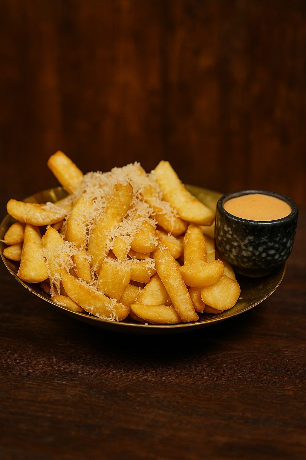 Steakhouse fries, special Coco seasoning, Kentucky Gold sauce, Grana Padano cheese