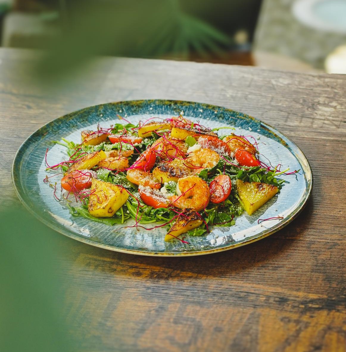 GRILLED CHICKEN 35PLN ,ARE SHRIMPS 45PLN ,EGG- GARLIC INFUSED CAESER DRESSING, ROMAN LETTUCE, CHERRY TOMATOES, BREAD CROUTONS, GRANA PADANO CHEESE